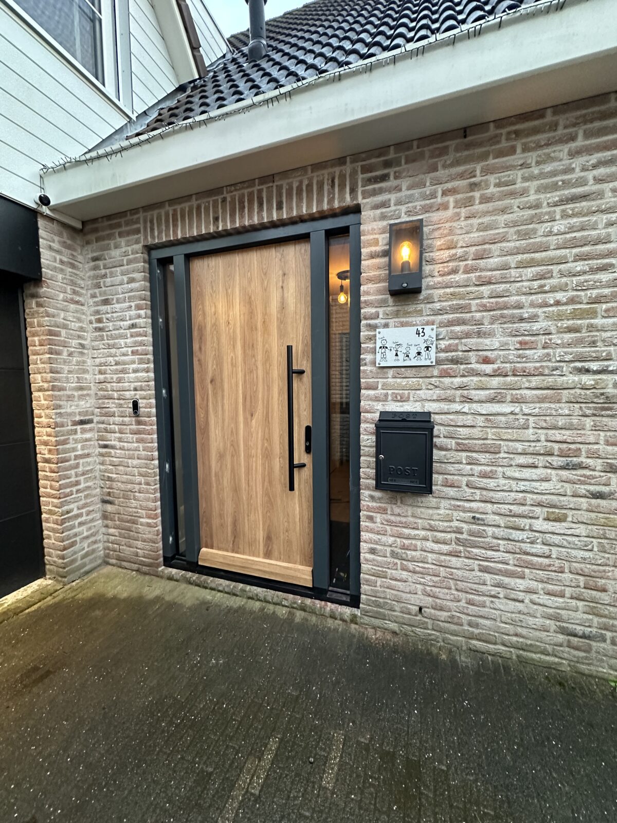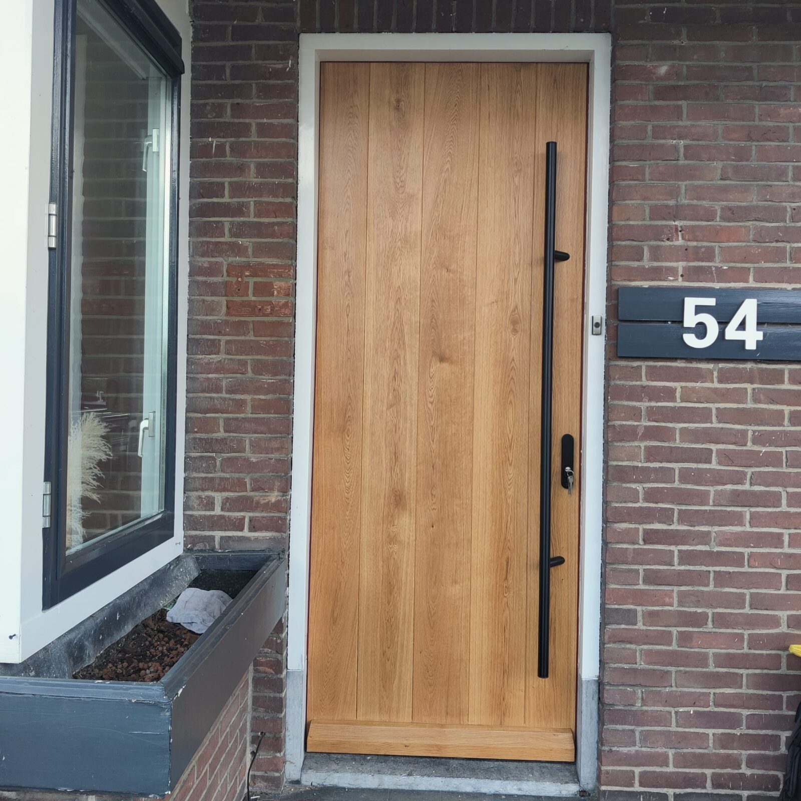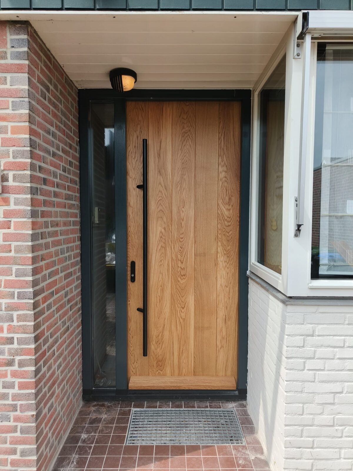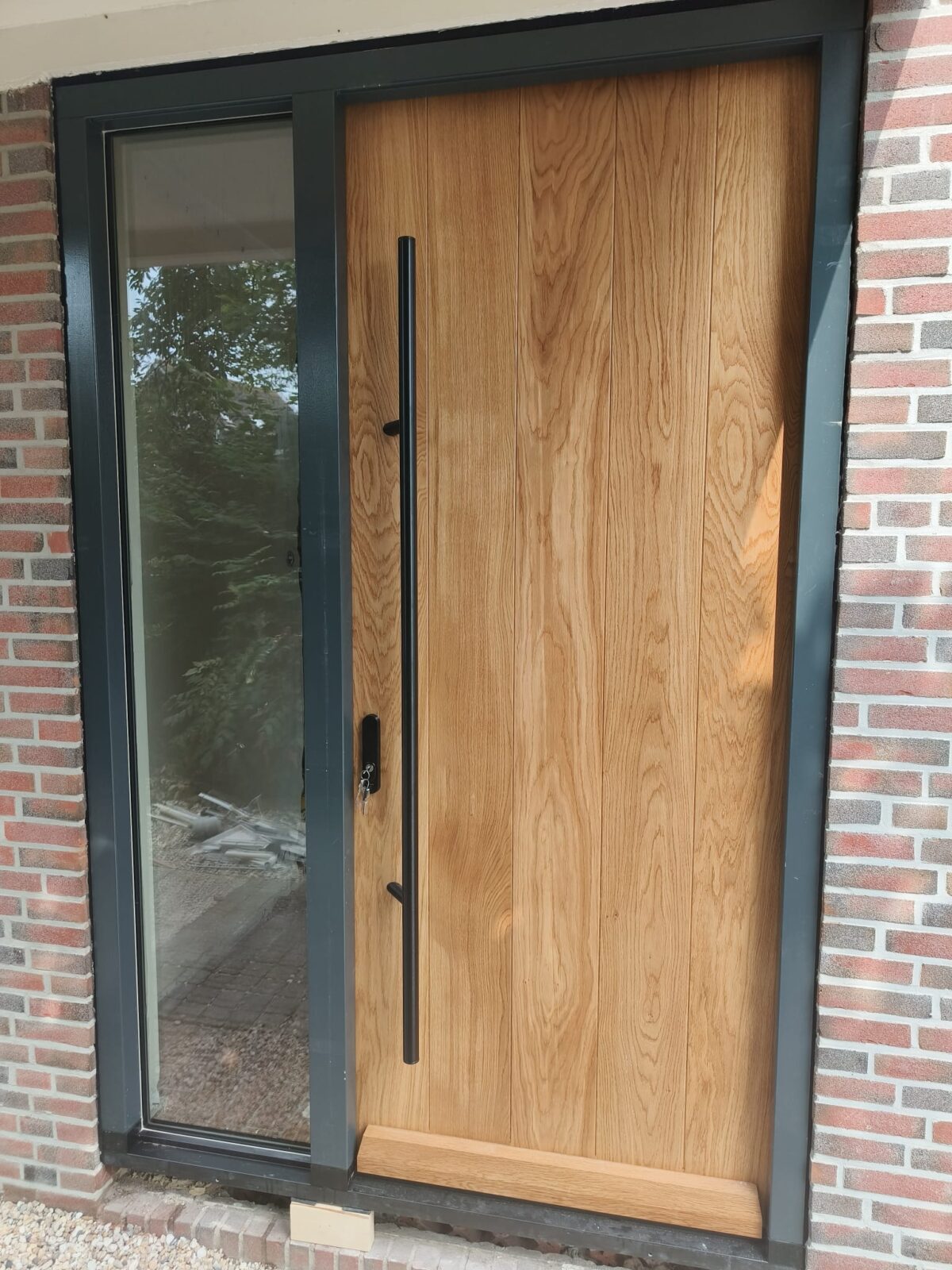 Opzoek naar een spraakmakende luxe voordeur voor jouw woning? Dat is de uitstraling van onze houten voordeur. Ontzettend duurzaam en zeer hoge isolatiewaarden zijn 2 kenmerken waarmee deze deur zich onderscheid van vele andere deuren. Onze houten voordeur is opgebouwd uit een zeer goed geïsoleerde Alutherm deur en voorzien van een unieke eikenhouten laag van maar liefst 5mm. Dit geeft de deur een bijzonder levendig karakter en zorgt ervoor dat elke maatwerk deur die bij ons vertrekt een persoonlijk tintje mee krijgt want geen plank is hetzelfde.